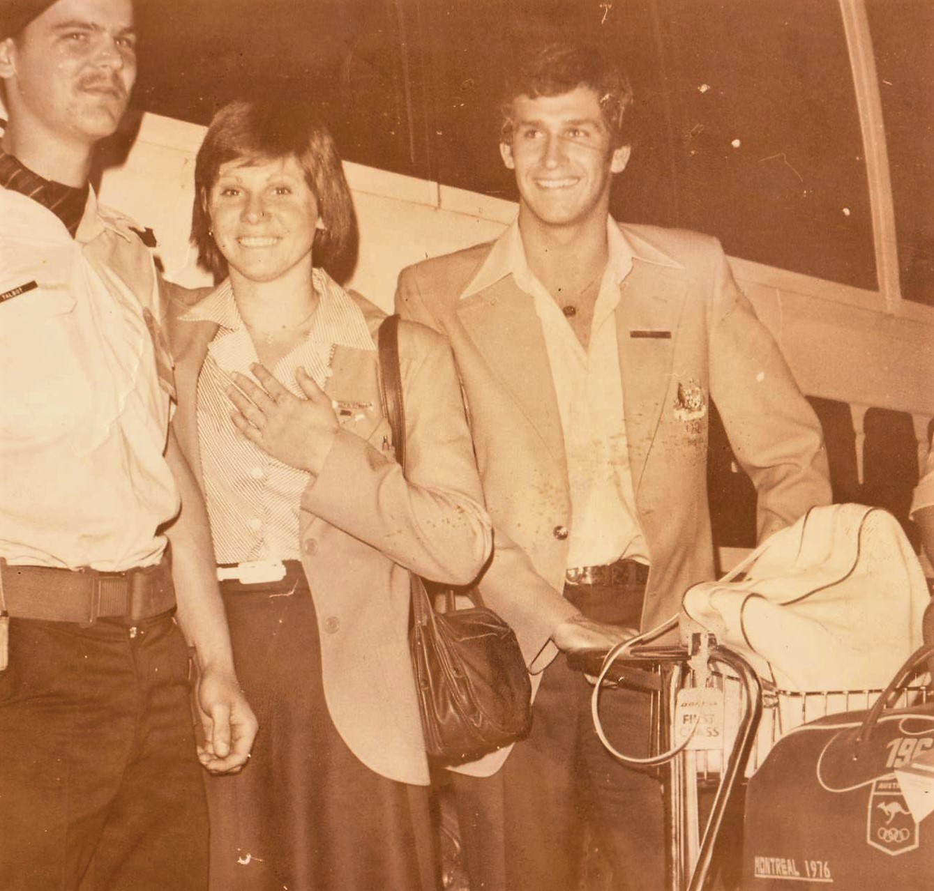 Nira Stove, standing next to future husband and fellow Olympian, Graham Windeatt. before departing for Montreal. Photograph courtesy of Nira and Graham Windeatt