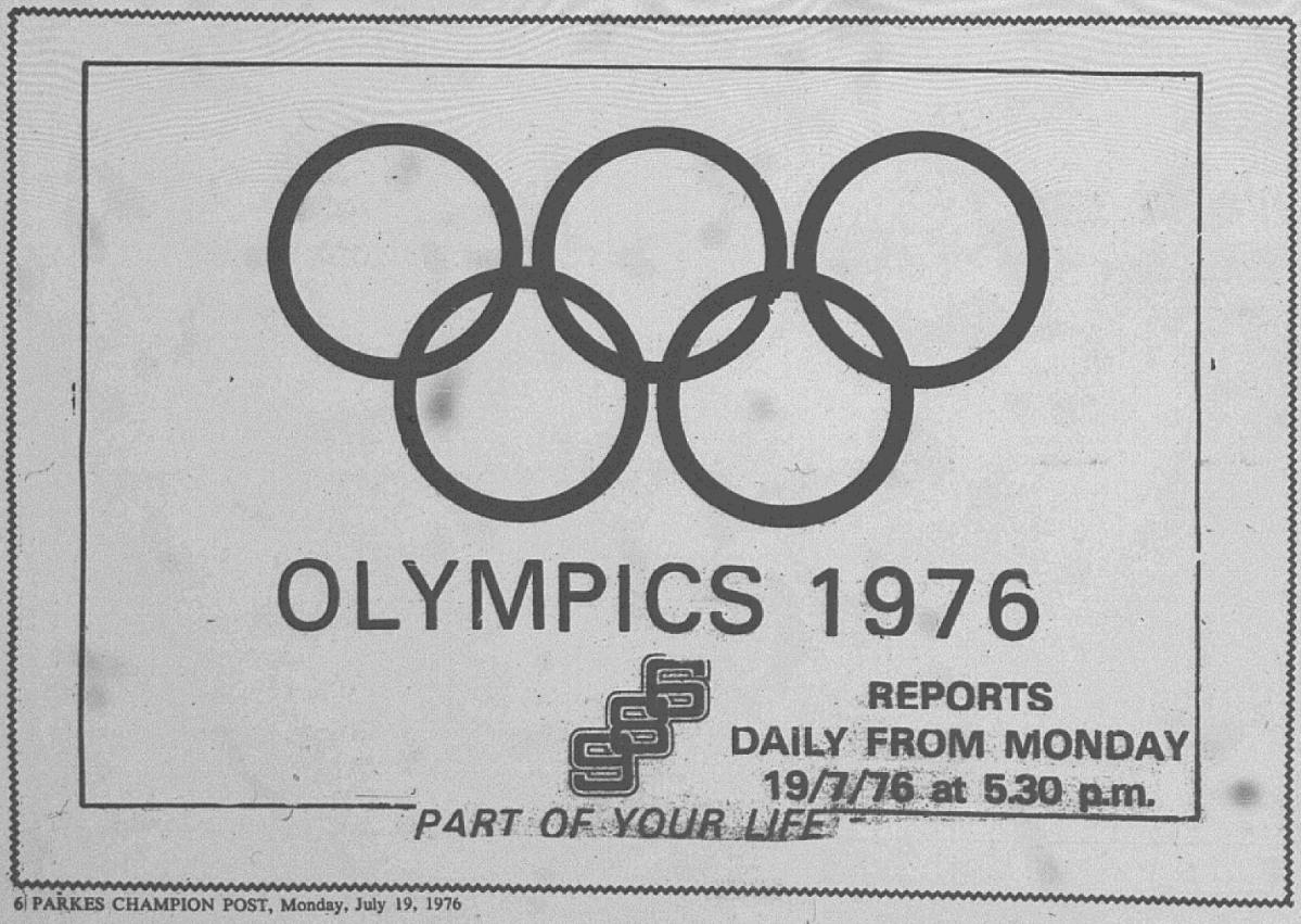 Advertisement for radio coverage of the Montreal Olympic Games. When Nira competed, in 1976, radio was the main source of news and information regarding the Olympic Games. Source: Parkes Champion Post Monday July 19. 1976 page 6