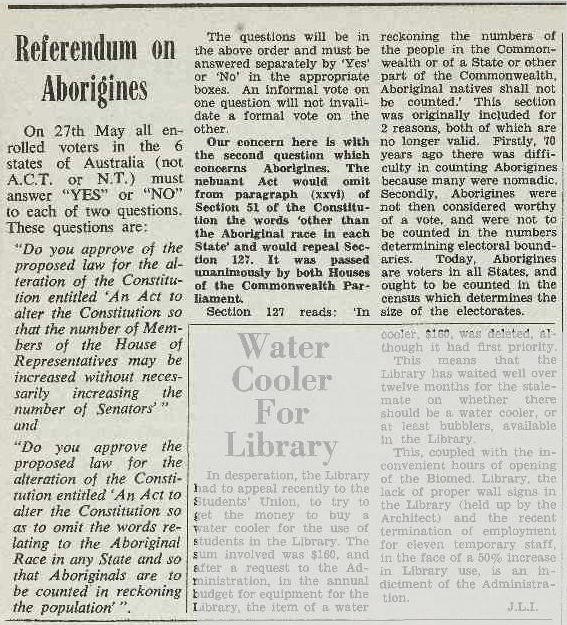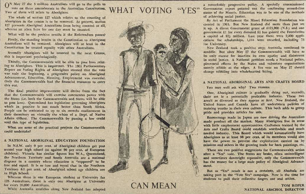 Student newspapers, such as Tharunka, helped propel the referendum issues to the forefront of the nation. Voting yes would have widespread positive consequences for indigenous Australians; including being counted in the Census. Source: Tharunka 11 May 1967 page 2
