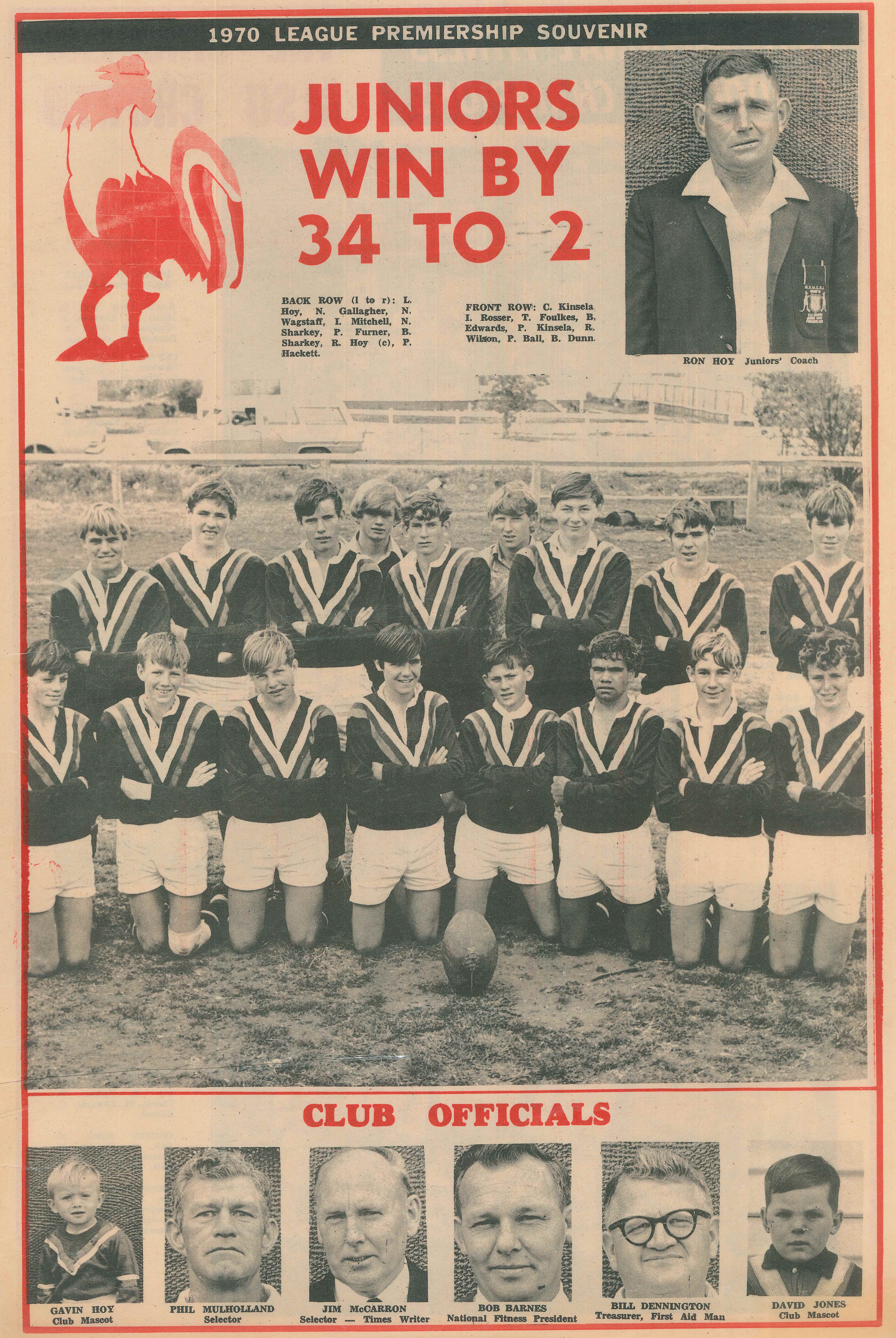 Peak Hill Juniors, victors by 34 to 2, are featured on the third page of the special souvenir local newspaper. Source: Peak Hill & District Times 18th September 1970 page 3