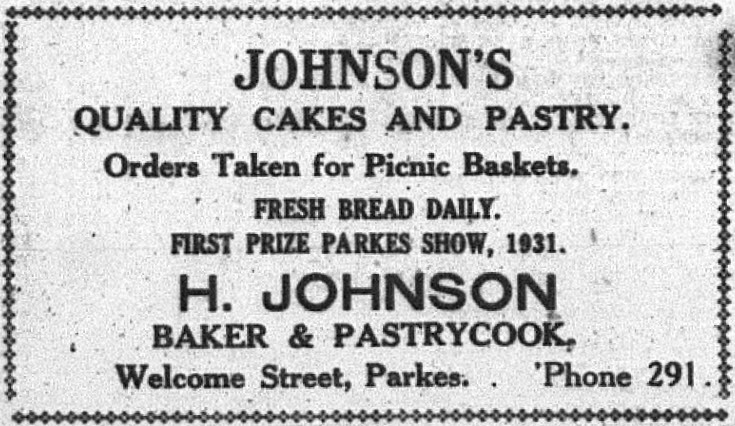 Not everything has changed since 1932 – Johnson’s Bakery is still open for business and located on Welcome Street in Parkes. The phone number is now 6862 2291! Source: The Western Champion Thursday June 23, 1932 page 15