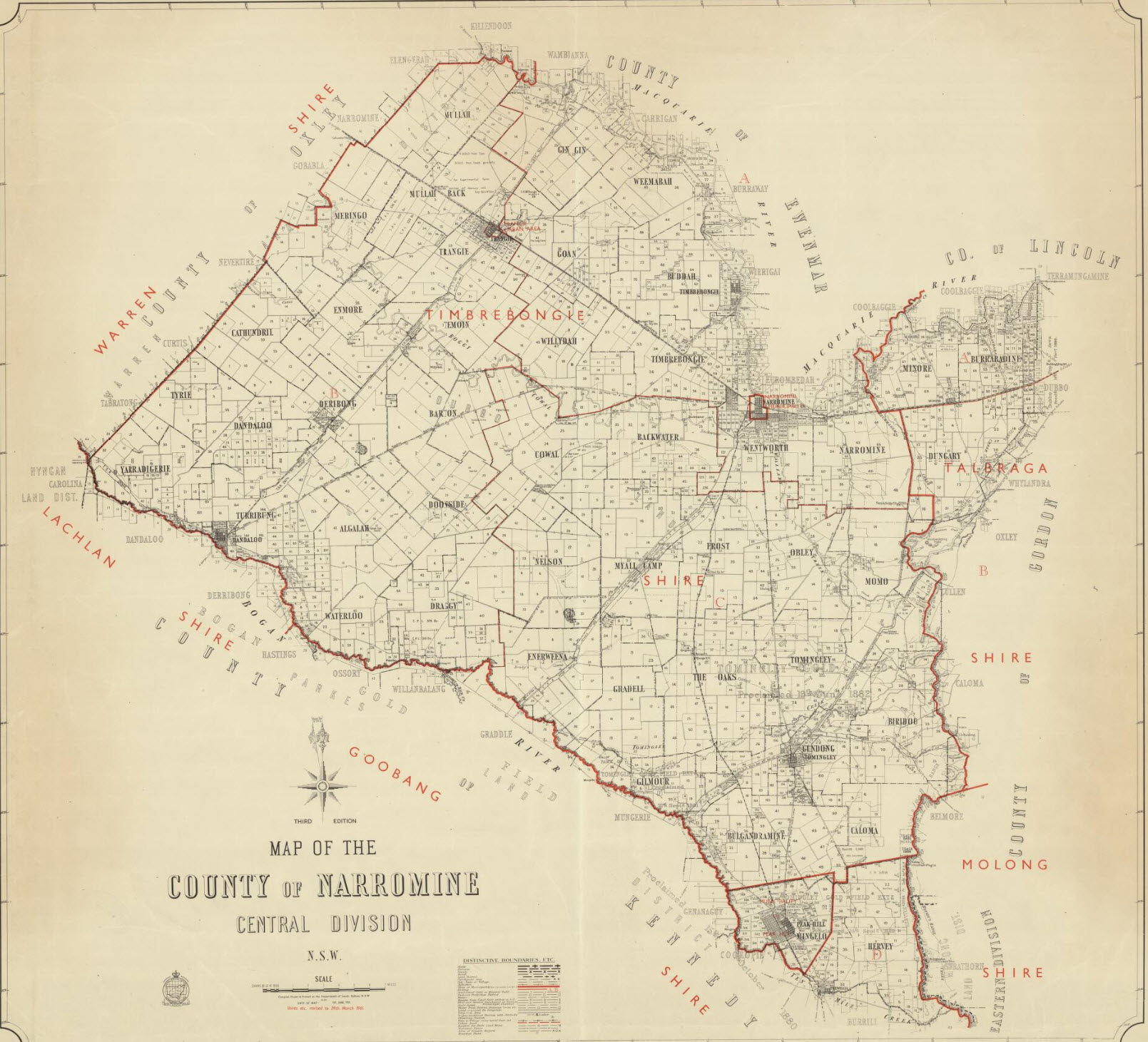 Continuing our series on the local counties of the early colony of New South Wales, this post focuses on the county of Narromine. Part of the 141 counties of New South Wales, Narromine was proclaimed a county in 1862 (the same year as Kennedy and Cunningham became counties and twelve years after the establishment of Ashburnham county) (Atchison, J.F. (1980) pages 39-42).
