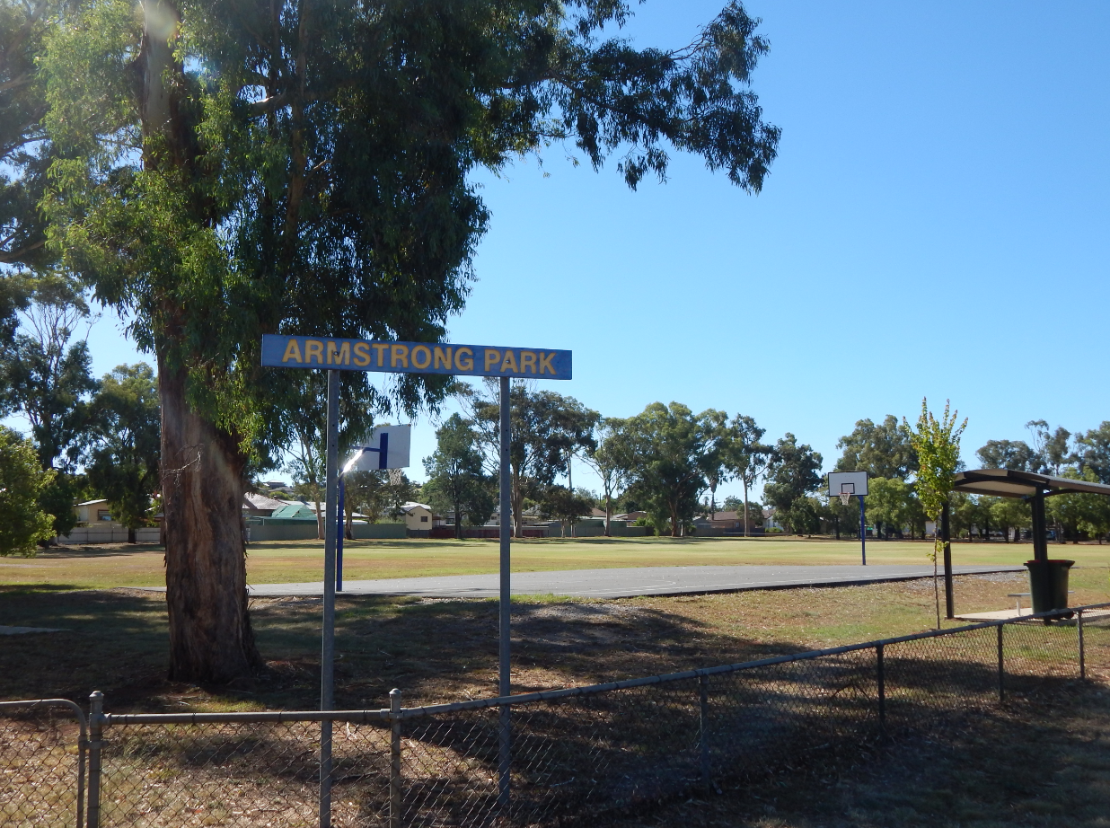 Armstrong Park is located on the eastern side of Parkes. which is opposite the block of land that Frank bought in 1951. Source: Google Maps