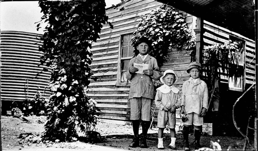 From left to right, Herb, Len and Ern Unger at the family farm “Rocky View” in Alectown. Date unknown. Source: State Library NSW