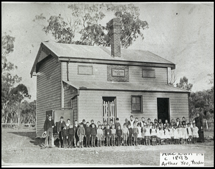 Photograph of Alectown Public School in 1893. While this photograph predates Len Unger’s time at school, this was the same building that he attended school in the 1920s. Source: State Records