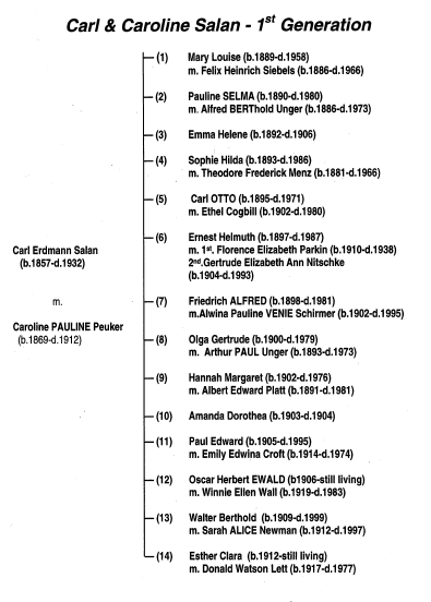 Len Unger researched his family and this is his maternal side. The names in capitals were the names that they were called. So Len’s mother was called ‘Selma’ and his dad was known as ‘Bert’. Source: A Brief History of Carl Erdmann Salan 1856-1932