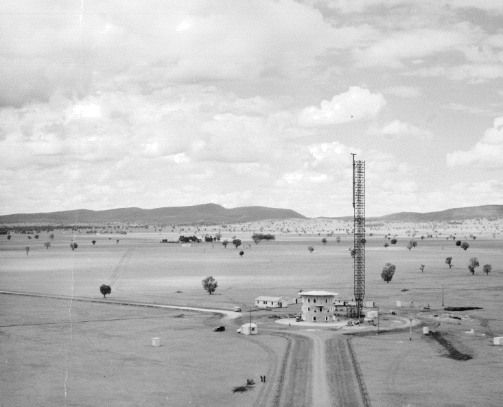 Photograph of the building of The Dish taken on the entrance road (now called Telescope Road). Source: Ron Tindall (photographer)