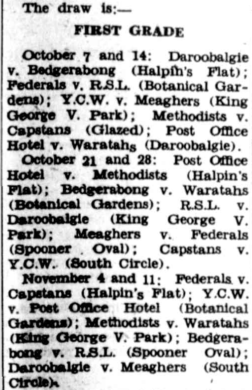 Sport – always an integral part of life in the Central West – makes the news, with the first grade draw for the Forbes District Cricket Competition. To view this article in its entirety click here. Source: The Forbes Advocate Friday 6 October 1950, p.11