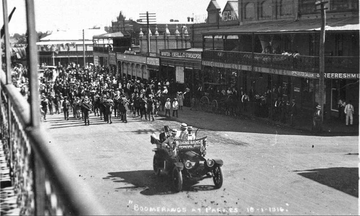 The Boomerangs as they marched into Parkes before heading to Daroobalgie on their way to Bathurst. Source: Flickr.com website