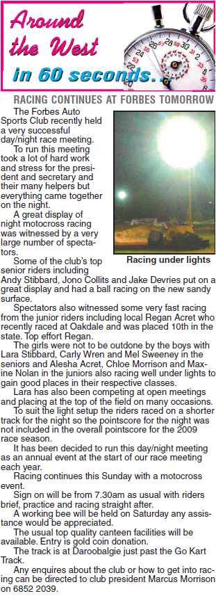 It’s not just bikes but auto sports and go karts at Daroobalgie. Source: Parkes Champion Post Friday, April 24, 2009 p.26