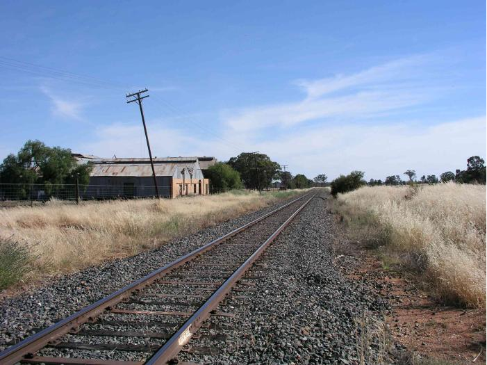 The view looking south from the one-time station location shows what appears to be the old meat freezing works, which were served by several sidings. Source: NSWRail.net website