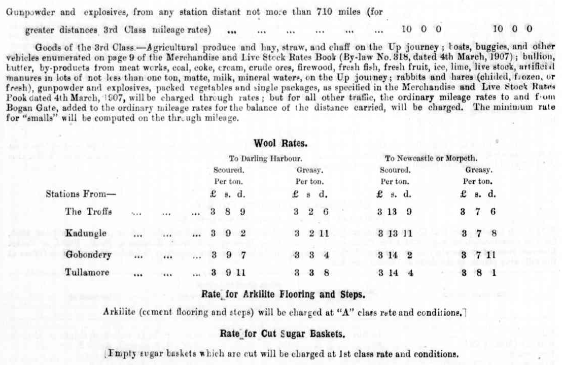 The first mention of Kadungle in the newspapers is about railway station buildings being erected at The Troffs, Gobondery, Tullamore and Kadungle. Source: The Daily Telegraph Tuesday 14 April 1908 p.5An excerpt from a page from government gazette explaining rules of transport on NSW railways. To read the article in its entirety click here. Source: Government Gazette of the State of New South Wales December 2, 1908 [Issue No.137] p.6428